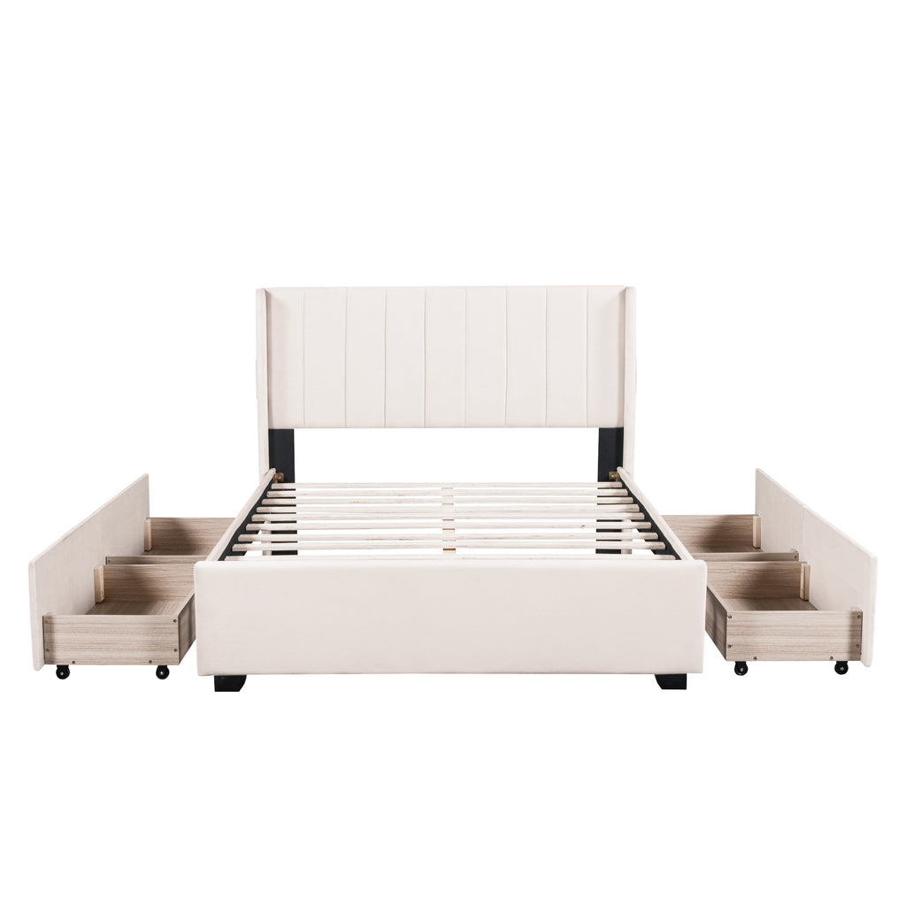 - [Storage space] This bed frame has four drawers with wheels for easy storage. Simply slide out the drawers to store extra bedding, clothes, or essentials right under your mattress. Enjoy a clutter-free space and the convenience of having everything within reach.