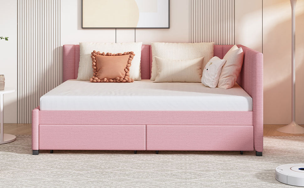 - [Classic Design] This classic design day bed adopts a semi-closed design concept, linen fabric is dirt-resistant and wear-resistant, and equipped with two movable drawers, which is functional and beautiful.