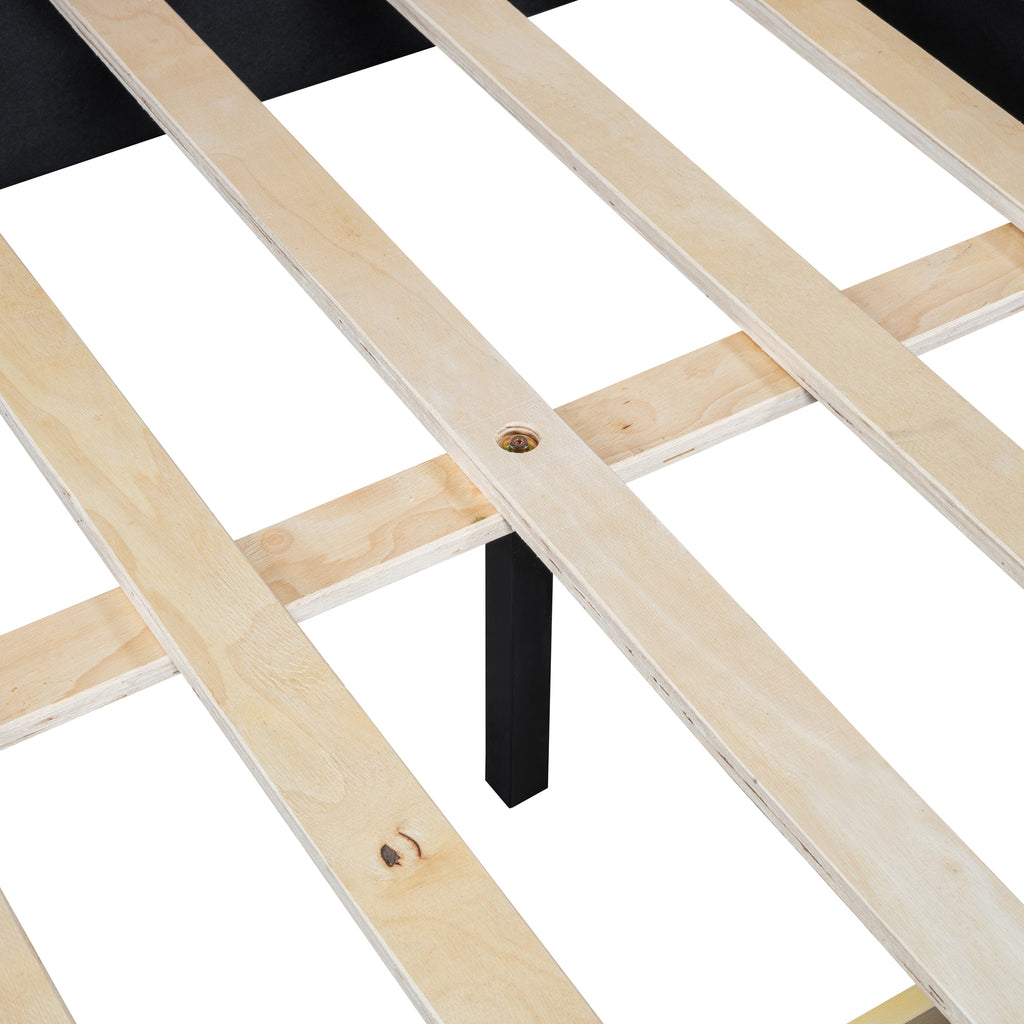 - [No Box Spring is required] This queen-sized bed frame comes with many wooden slats, and as such this bed doesn't require a box spring. Mattress is not included. backrest is included as a comfy linen fabric backrest that brings you and your partner a cozy feeling.