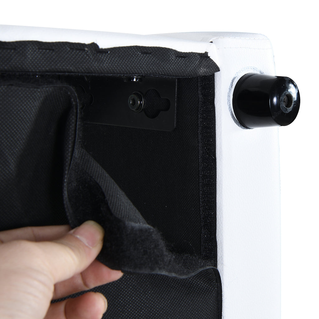 - [Modern Metal Strip]Decorated with stylish faux leather design, there are beautiful metal strips on the headboard and footboard.