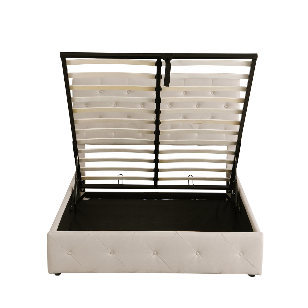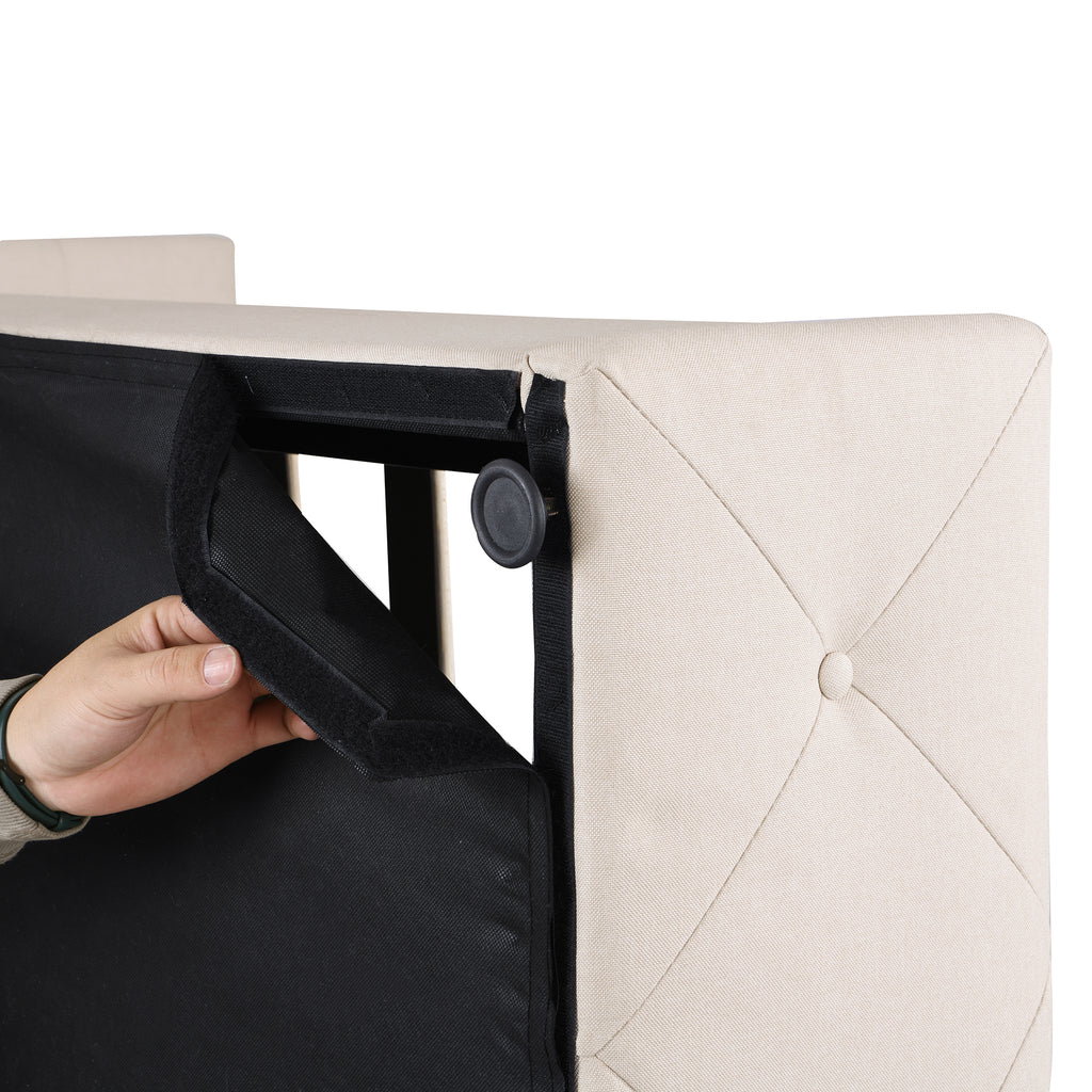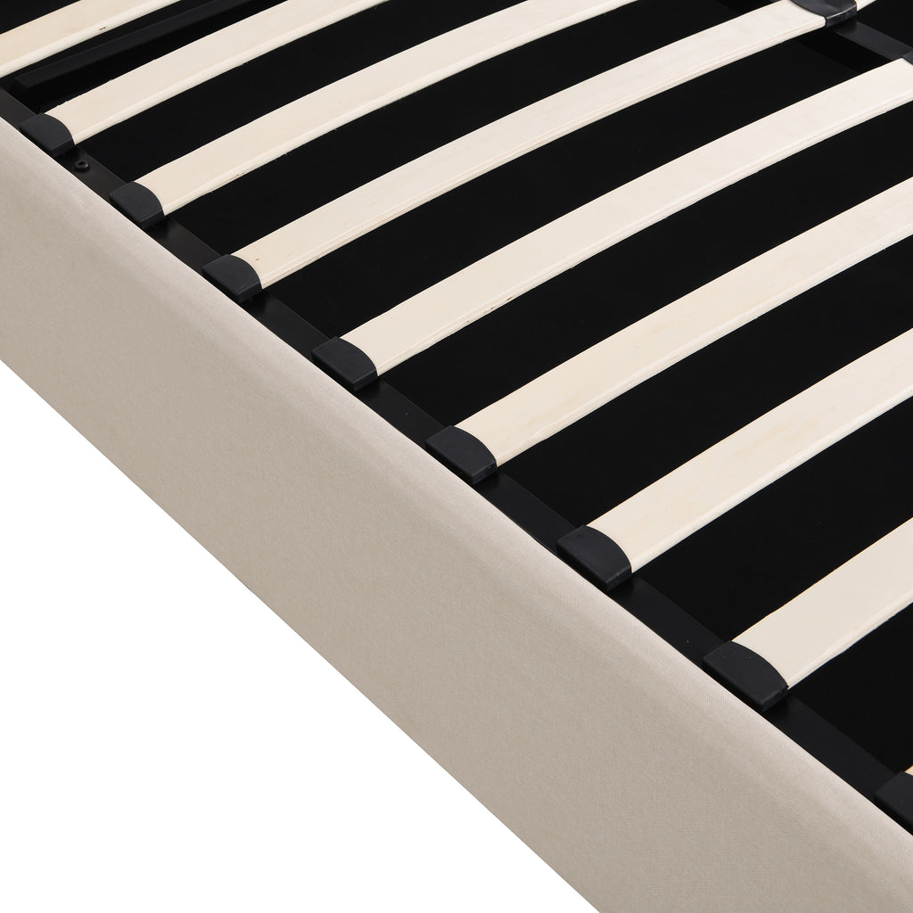 - [Elegant Design] Upholstered in carefully-selected linen fabric,and with docorative details, this platform bed not only suits any home décor, but is timeless in its design. The soft textile bedhead creates coziness, while the single color of the design creates versatility.