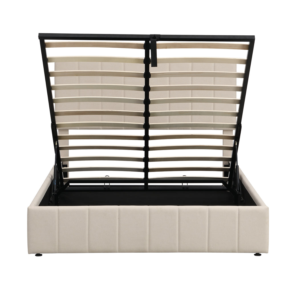 - [Elegant Design] Upholstered in carefully-selected linen fabric, in elegant beige, and with docorative details, this platform bed not only suits any home décor, but is timeless in its design. The soft textile bedhead creates coziness, while the single color of the design creates versatility.