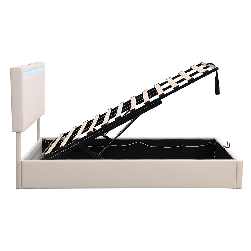 - [Hydraulic storage system] The hydraulic storage system underneath the mattress is perfect for you to store quilts, bed sheets and other necessities. Functional and aesthetic, this platform bed will enhance any bedroom.