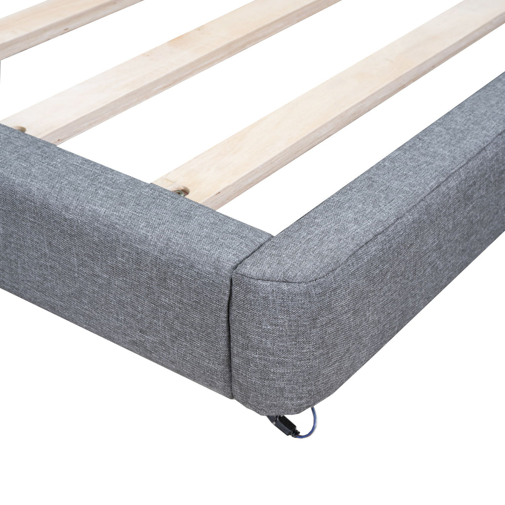 Full Size Upholstered Platform Bed With LED Lights, USB Ports And Outlets - Gray