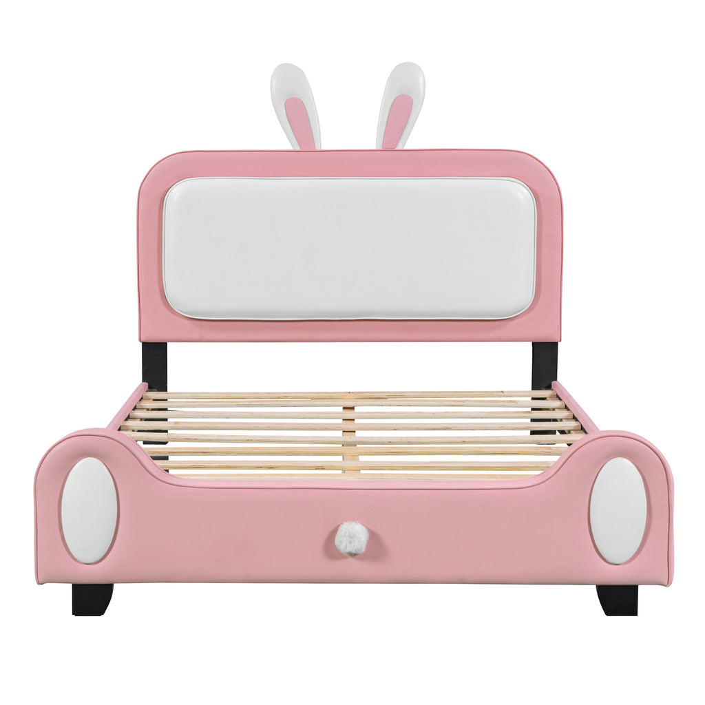 Full size Upholstered Rabbit-Shape Princess Bed ,Full Size Platform Bed with Headboard and Footboard
