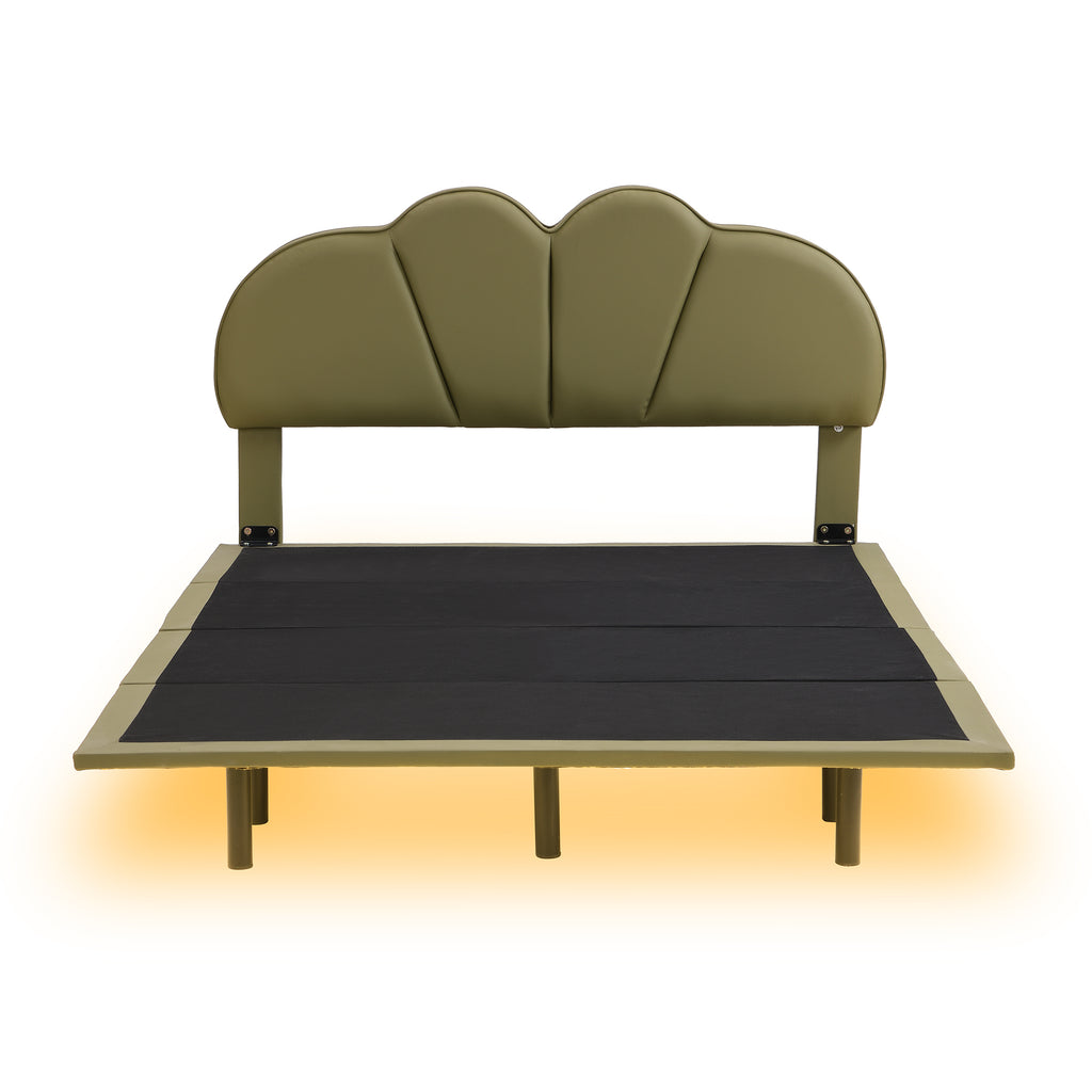 Full Size Upholstery LED Floating Bed with PU Leather Headboard and Support Legs,Green