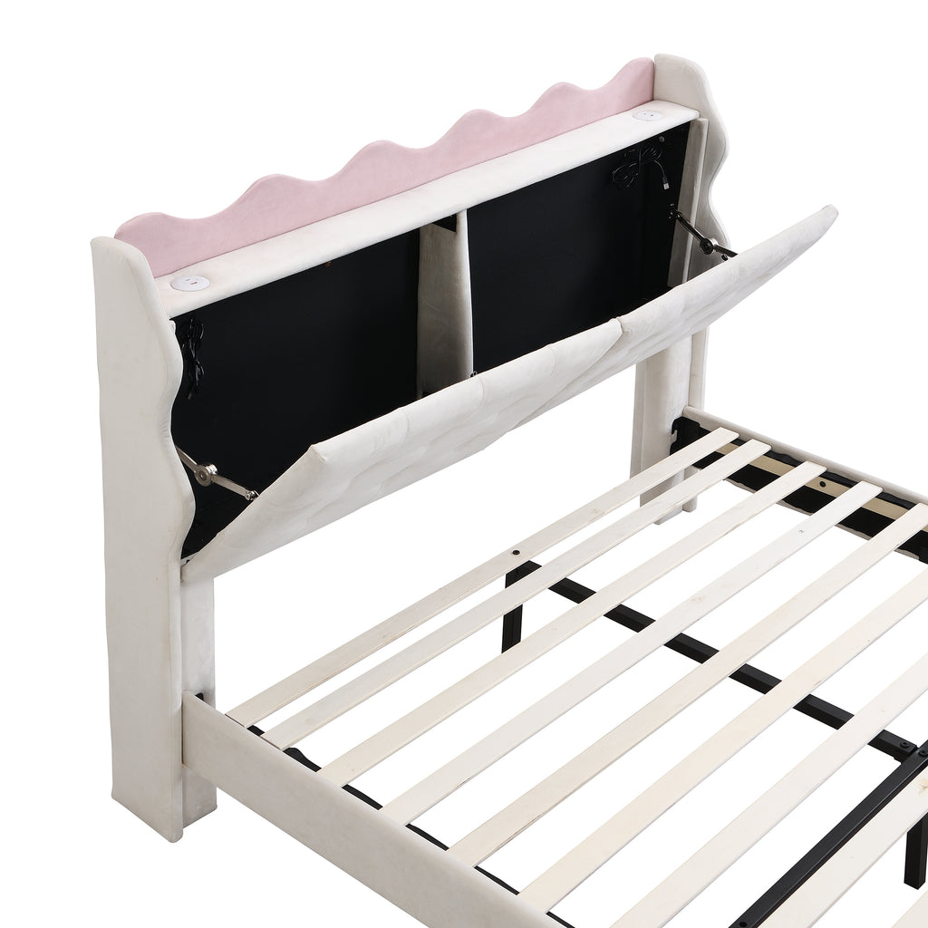 - [Upholstery Headboard with Shelves] Upholstered headboard provides a more comfortable and safe sleep.In addition, it can be opened to have an internal storage space.And the storage headboard has 2 storage compartments and shelf to help you organize your favorite books, ornaments or put some decors.It’s the perfect solution for small living space to a neat and fascinating bedroom.