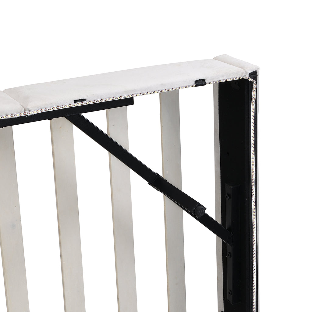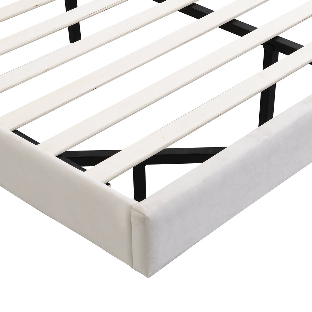 - [Under-bed Light Strips and USB Charging Design] This bed frame comes with LED light stripe, 3 changeable brightness of 1 color controlled by remote. The floating design and LED lights complement each other, creating a sense of modern technology and bringing a unique and novel visual experience. And comes with 2 USB charging ports so you can charge at your bedside
