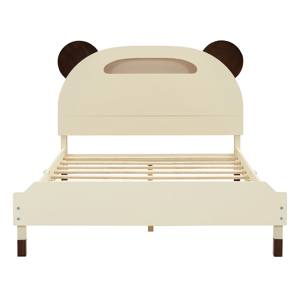Full Size Wood Platform Bed with Bear-shaped Headboard,Bed with Motion Activated Night Lights