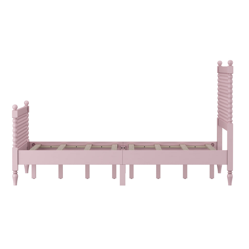 This interesting gourd shape design gives this full-size bed a playful aesthetic that can lighten the mood of any bedroom. A bright pink finish allows this piece to blend seamlessly with any interior style. Sturdy construction ensures this piece will stand up to years of love and use.