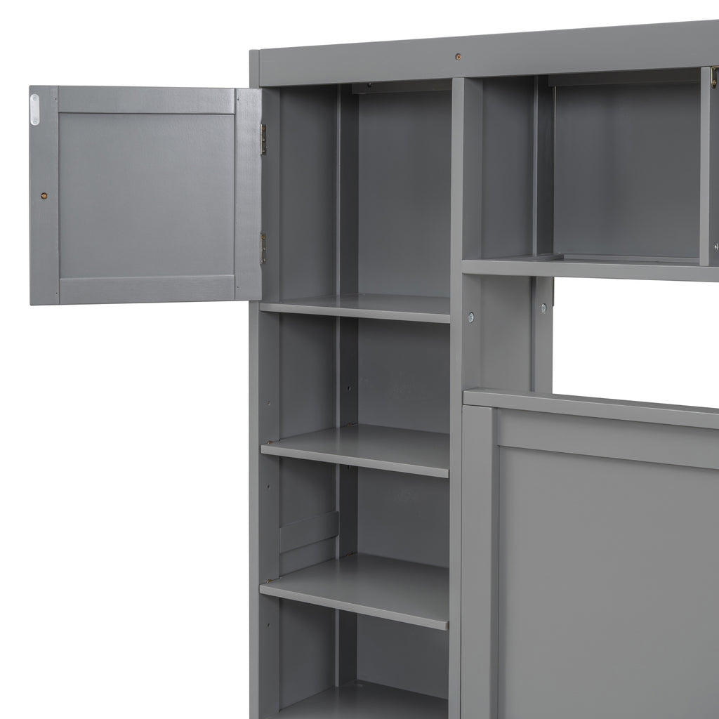 - [Flexible storage space] 2 drawers and trundle under the bed can be slided in and out very smoothly, which takes full advantage of the space under the bed. You can storage your bedding or clothes and making your bedroom more tidy. There are 10 shelf cubes and 4 cabinets designed at the side of the headboard, you can put in whatever you want into them. You can make the headboard a wonderful decor place that ever has.