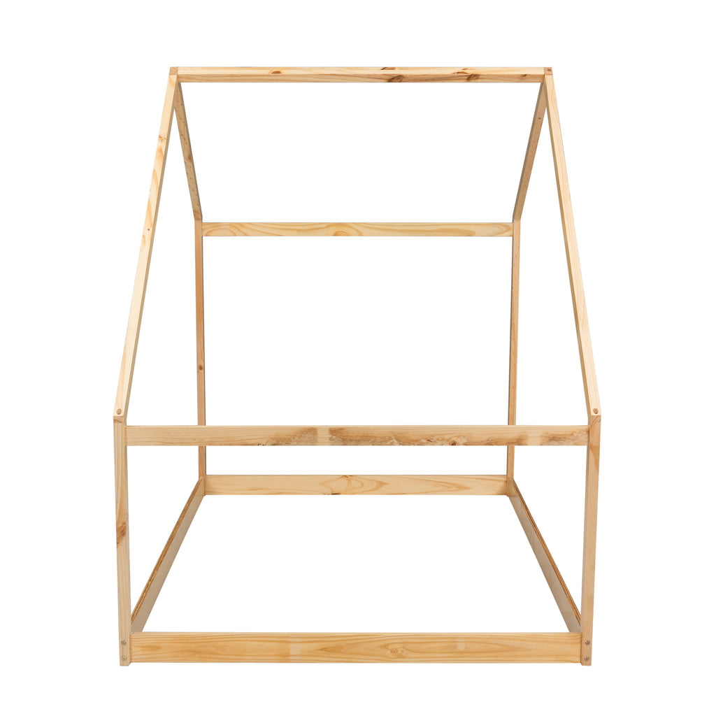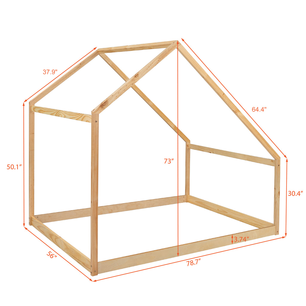 Full Size Wooden House Bed, Natural
