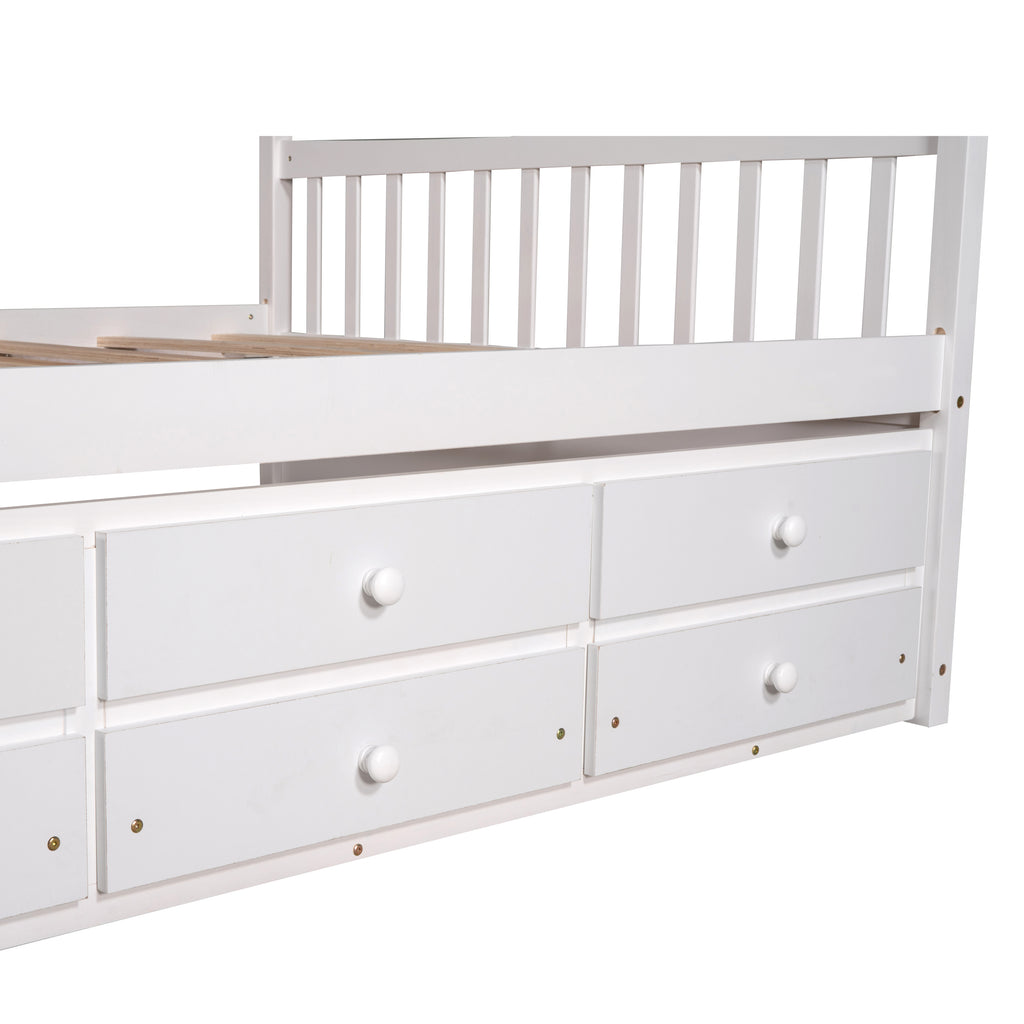 - [Health and Comfort] No box spring required, and without needing a foundation. The simple yet elegant wood frame is sturdy and comes with wood slats for extra support and ensures air moves freely around your mattress to keep it fresh for years to come. Built-in smoothly casters , easy for you to pull out of the drawers.