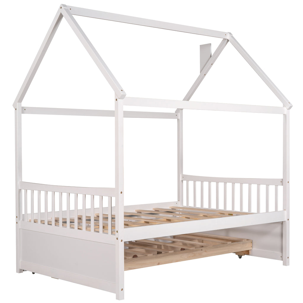 - [Maximized space] The house bed with handy pull-out trundle and three functioning drawers takes up minimal space for the spontaneous sleepover guest. The trundle and drawers can easily be pulled in and out for maximum storage space, perfect for organizing anything from clothes and bed linens to toys and games. Such a versatile piece, bringing functionality, versatility, and style to your home, perfect for those who have lots of visitors.
