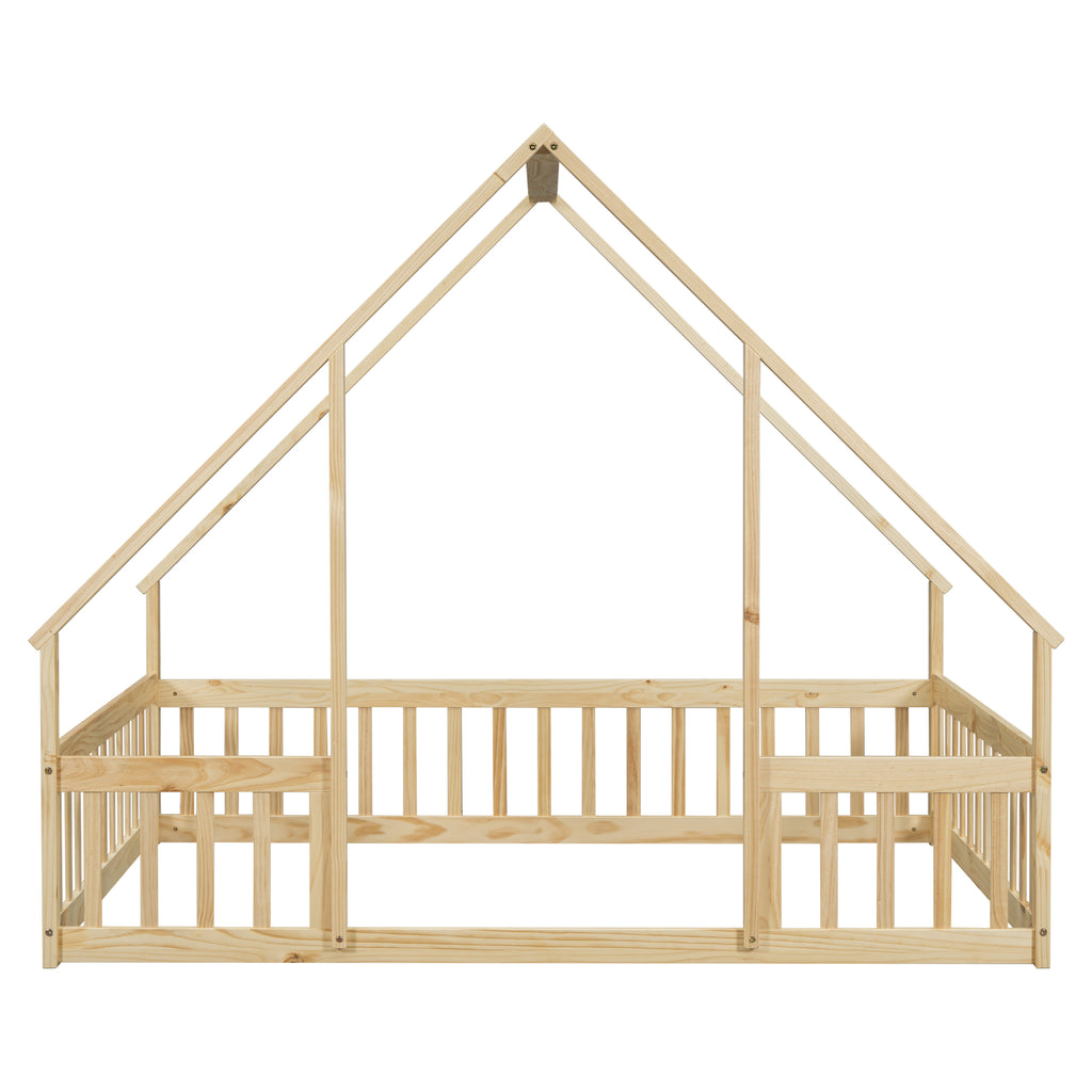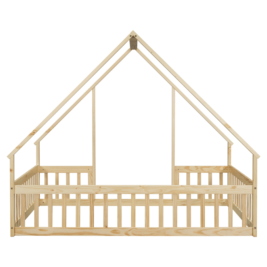 - #1 [Wood House Roof Frame]The unique design of this floor bed with wood roof frame provides an endless imagination and access to the natural woods to have a fun and fall asleep. Moreover, various decorations and accessories can be put on that wood house frame to accompany a whole sleep and daily activities.
