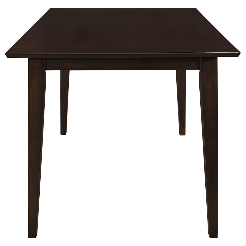 Elevate your dining space with this sleek 59-inch rectangular dining table, expertly crafted with hardwood, engineered wood, and okume veneer. Featuring a stunning cappuccino finish, this table combines durability and modern elegance, making it perfect for both family meals and formal gatherings. Its compact size offers versatility for various room layouts, while the sturdy construction ensures years of use. A must-have centerpiece for contemporary dining rooms.