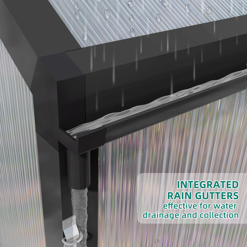 - Drainage System: Integrated gutter system channels rainwater away from the greenhouse to prevent water accumulation and maintain dry conditions.