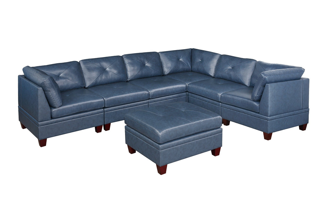 A classic design that is both simple, yet timeless. Bringing a feeling of soft comfort without having to compromise on style. The set comes with optional corner sofa, armless chair and cocktail ottoman, you can create a set that fit your exact need. The set comes in Ink Blue color Genuine Leather, it will give the luxurious look to your room and ready to welcome guests.