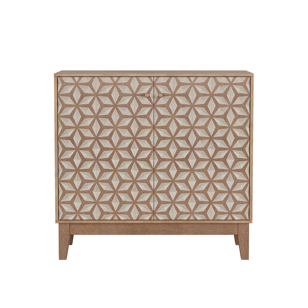 - Unique Geometric Double Door Cabinet: Distressed design with retro-minimalist appeal, enhancing any room with rustic warmth and visual interest.