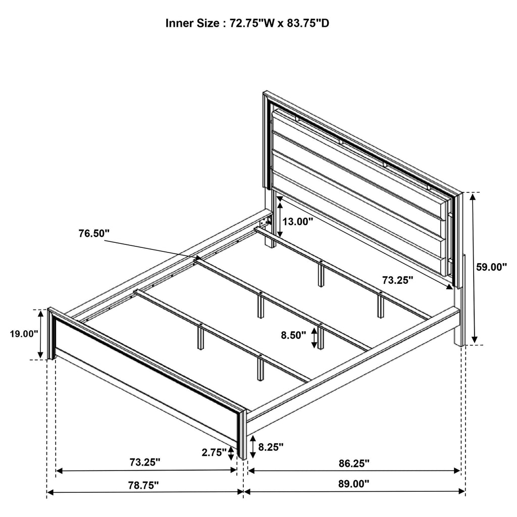 Center your inviting bedroom on a modern wooden bed. Its upholstered headboard assures welcoming indulgence, with beige fabric and channel tufting that creates comfort while lounging or relaxing. The bed is built with a wooden frame and features a rustic beige wood grain finish over its low footboard and rails. Stylish trim work adds depth the head and footboards, offering a dimensional touch in your bedroom. Pair this lovely bed with neutral linens and wood furniture for a chic but relaxed atmosphere.