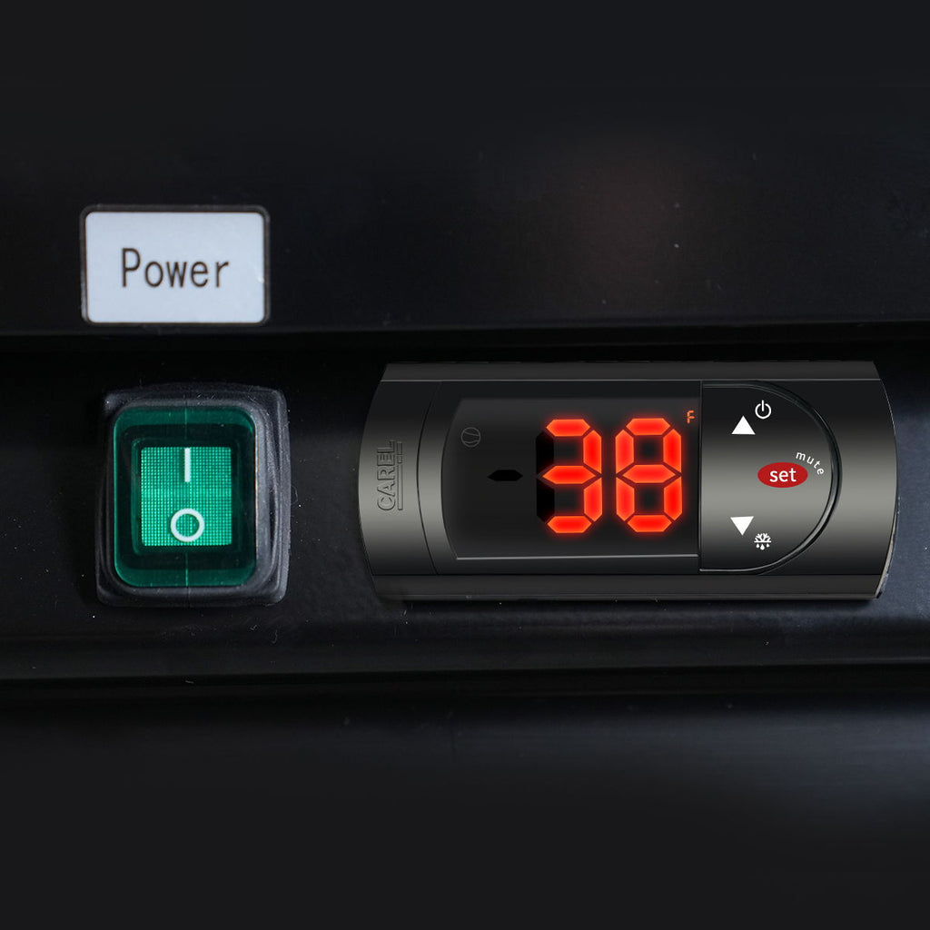 - Precise Temperature Control & Auto Defrost: CAREL digital controller maintains 32~44 temperature range. Automatic defrosting every 6 hours. Dynamic fan cooling for even chilling and energy savings.