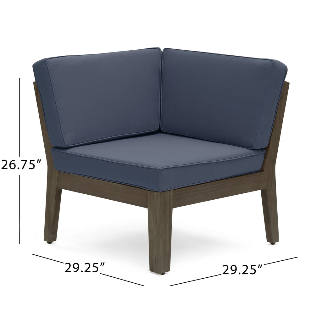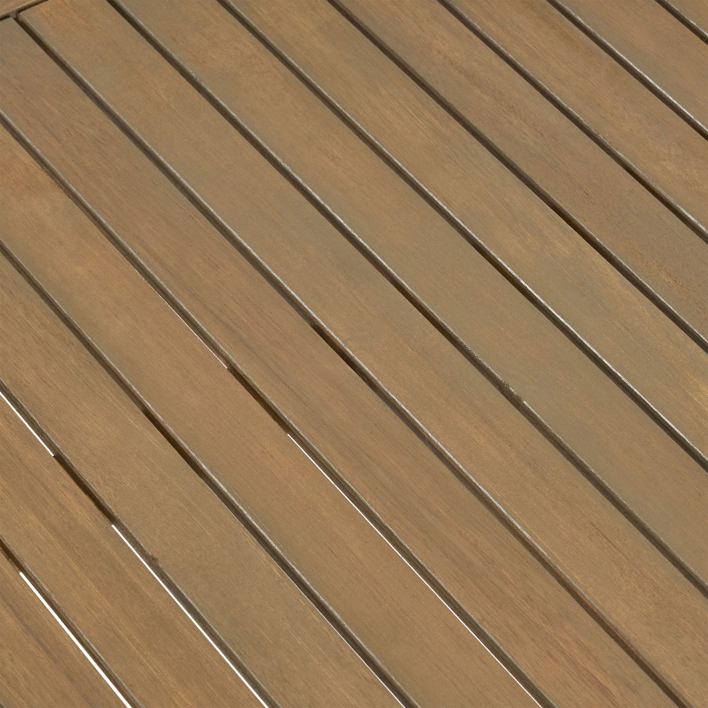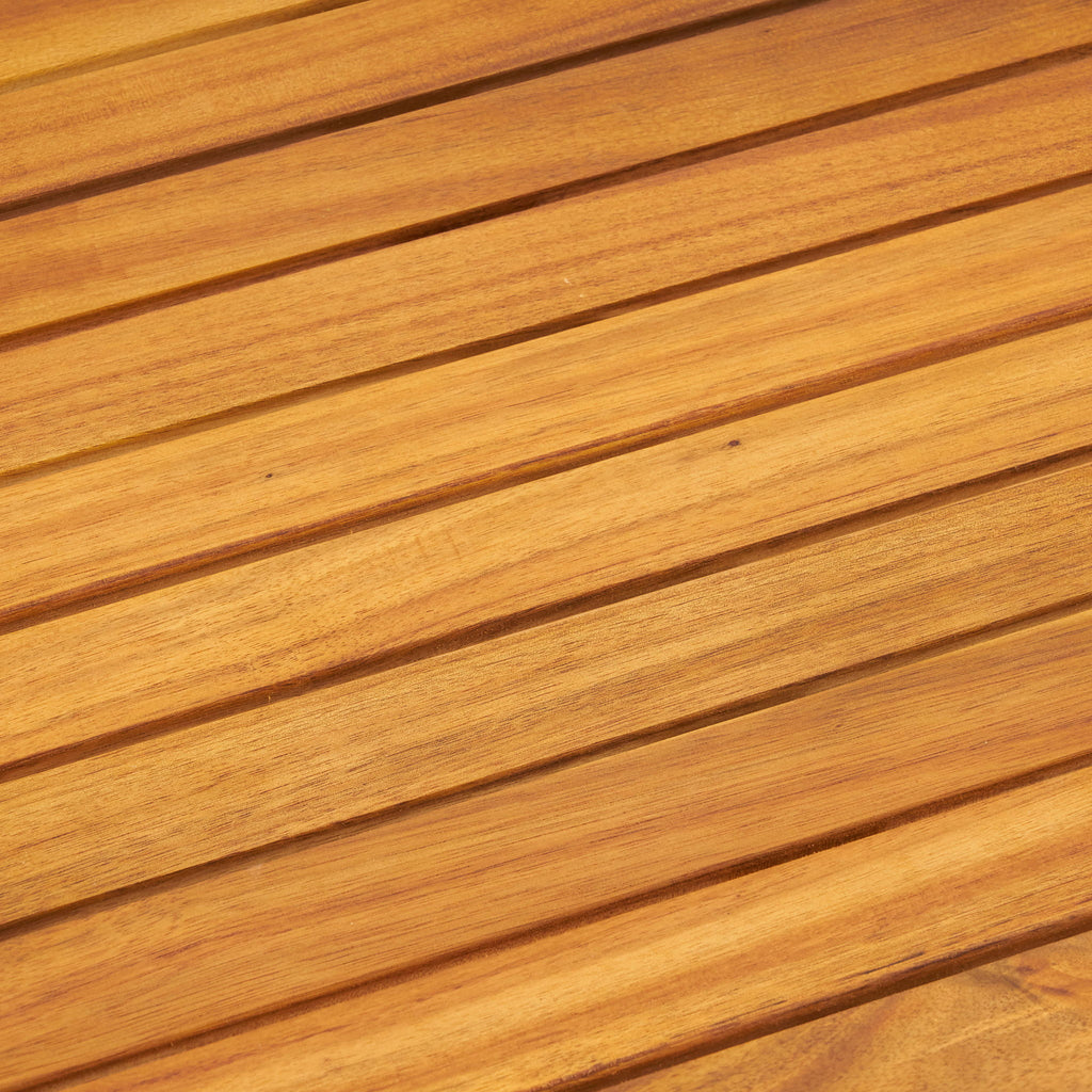 - Durable Acacia Wood: The Grenada corner and coffee table set is crafted from acacia wood, offering a sleek and exotic look. This durable hardwood is perfect for outdoor use as it withstands elements without darkening over time, providing a solid and heavy frame resistant to wear and tear.