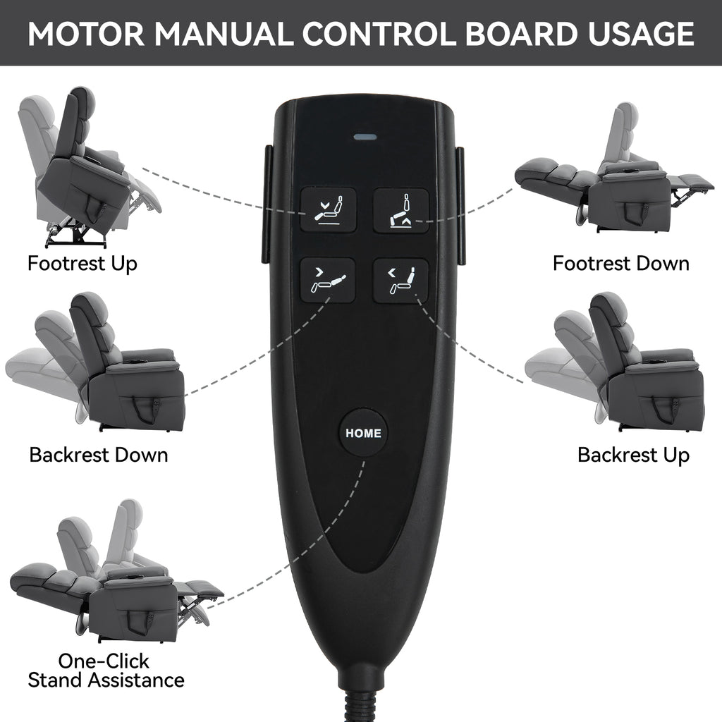 - POWER LIFT RECLINER CHAIR WITH DUAL MOTOR: You can press the power remote to control the lift or recline of the recliner chair, which means you can get any position you want, it's reclining close to 180 degrees or lifting. The lift chair is powered by electric motor mechanism to push the entire chair up, working smoothly and silently to help the elderly stand up easily. It's also ideal for people who have balance problems with legs or back, or who after surgery.