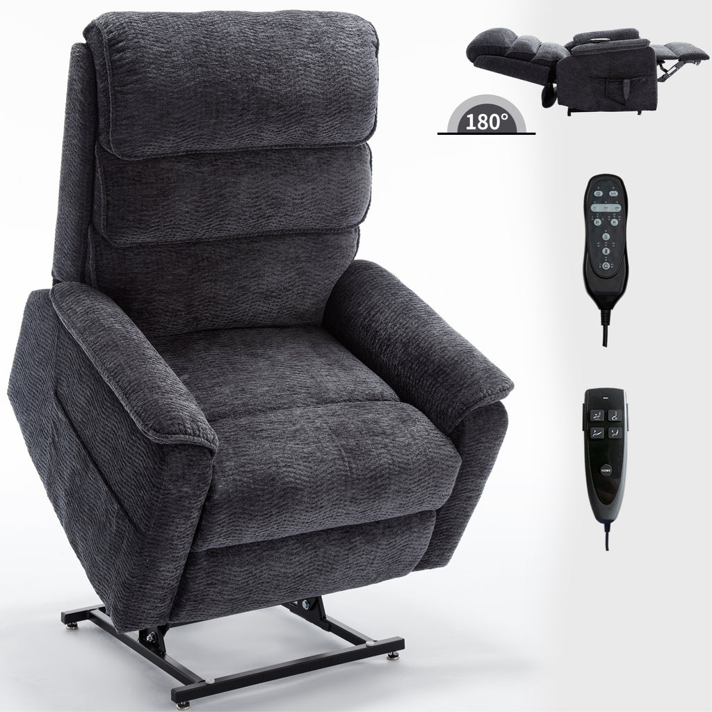 - POWER LIFT RECLINER CHAIR WITH DUAL MOTOR: You can press the power remote to control the lift or recline of the recliner chair, which means you can get any position you want, it's reclining close to 180 degrees or lifting. The lift chair is powered by electric motor mechanism to push the entire chair up, working smoothly and silently to help the elderly stand up easily. It's also ideal for people who have balance problems with legs or back, or who after surgery.