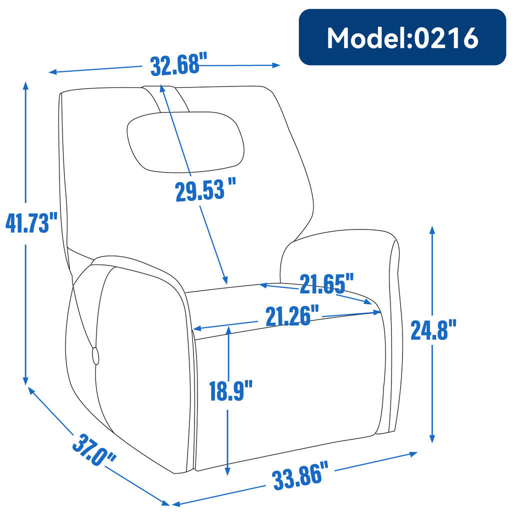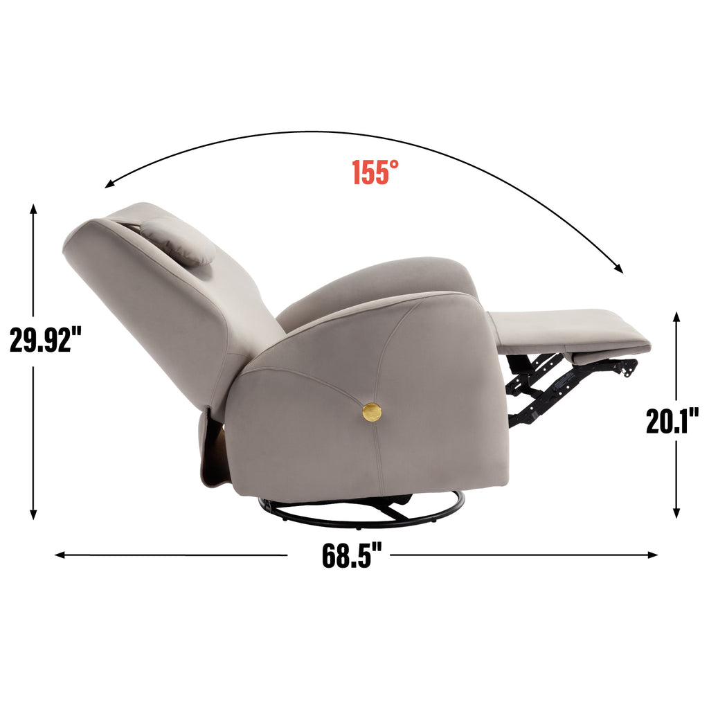 • POWER GLIDER SWIVEL ROCKER RECLINER CHAIR: The smooth and gentle 270 degree swivel does not make the chair stiff when used; The 110-155degree recliner can satisfy you in various situation such as sitting and reading and watching TV, lying down, and resting; It also offers a gentle rocking function, allowing 30 degrees of motion, providing a comforting and stress-relieving, while USB and Type-C dual charging ports provide convenient charging for various electronic devices.