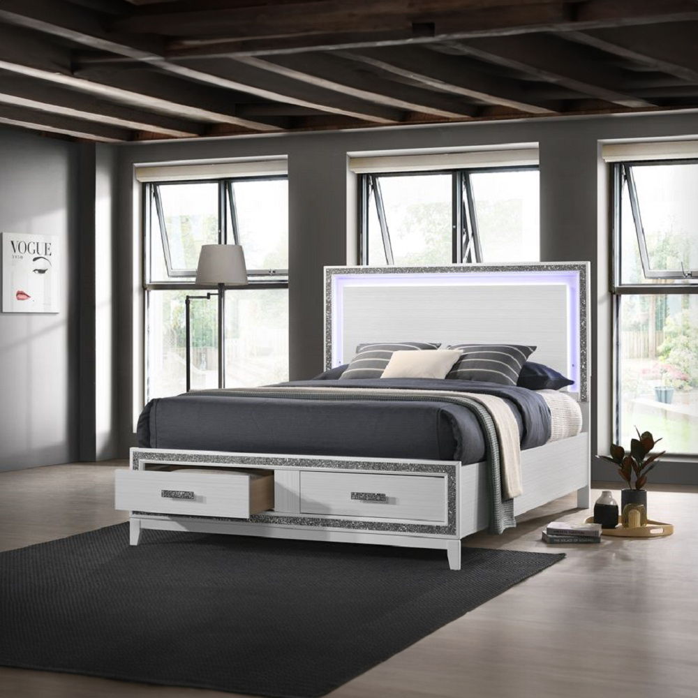 Haiden - Queen Bed With LED & Storage - White 63.0"W x 84.0"D x 54.0"H - 165.0 lb