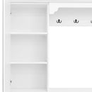 Hall Tree With Integrated Shoe Cabinet And Mirrored Cabinet Door, Coat Hanger, Entryway Bench, 4 In 1 Design, 2 Flip Drawers, 4 Hooks And 2 Cabinets For Entrance, Living Room - White