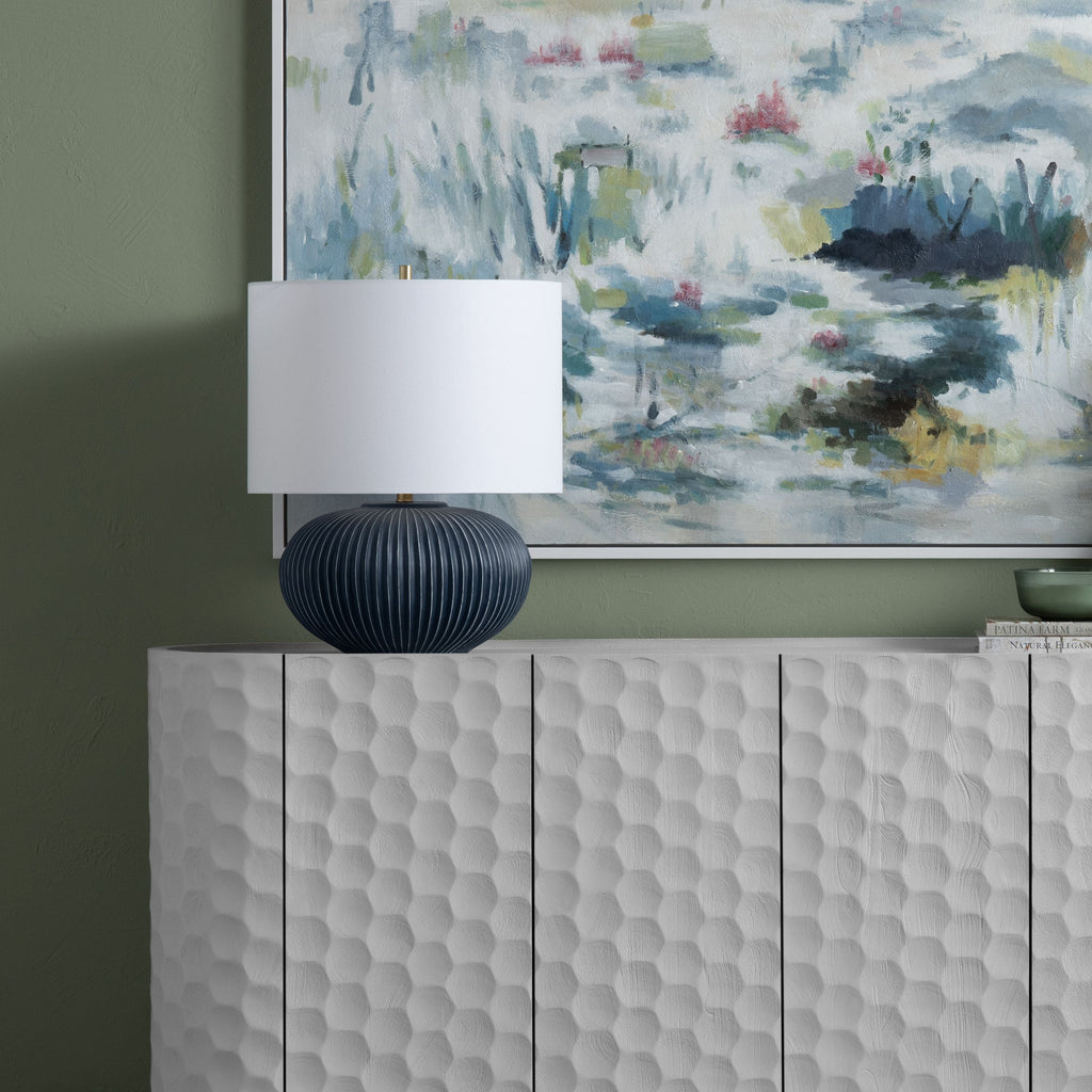 The Crestview Collection Hamptons Table Lamp is the embodiment of coastal luxe. The weathered indigo color and gentle curves and tasteful ribbing around the body adds sophistication and style. Whether adorning your living room, bedroom or study the Hamptons Table Lamp is versatile and a excellent choice for the beach.