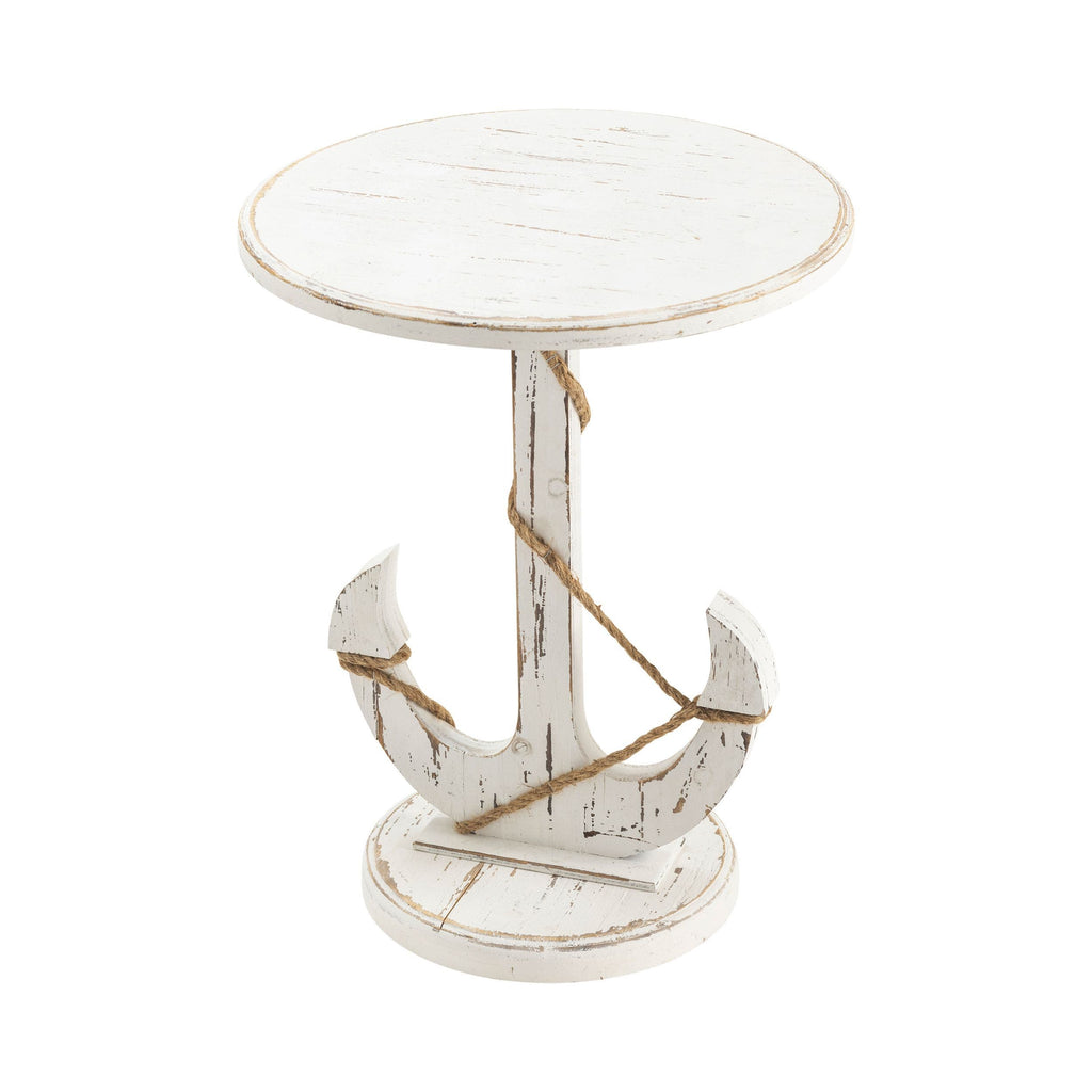 Evoke the sense of a grand journey about to begin, or memories of past adventure with this Crestview Collection Harbor Distressed White Anchor Table. It tucks neatly next to your favorite novel-reading chair for both function and flair. The distressed white finish gives this table the feel of years of coastal breezes, and the perfectly-sized ship anchor support shape below brings the nautical to your home.