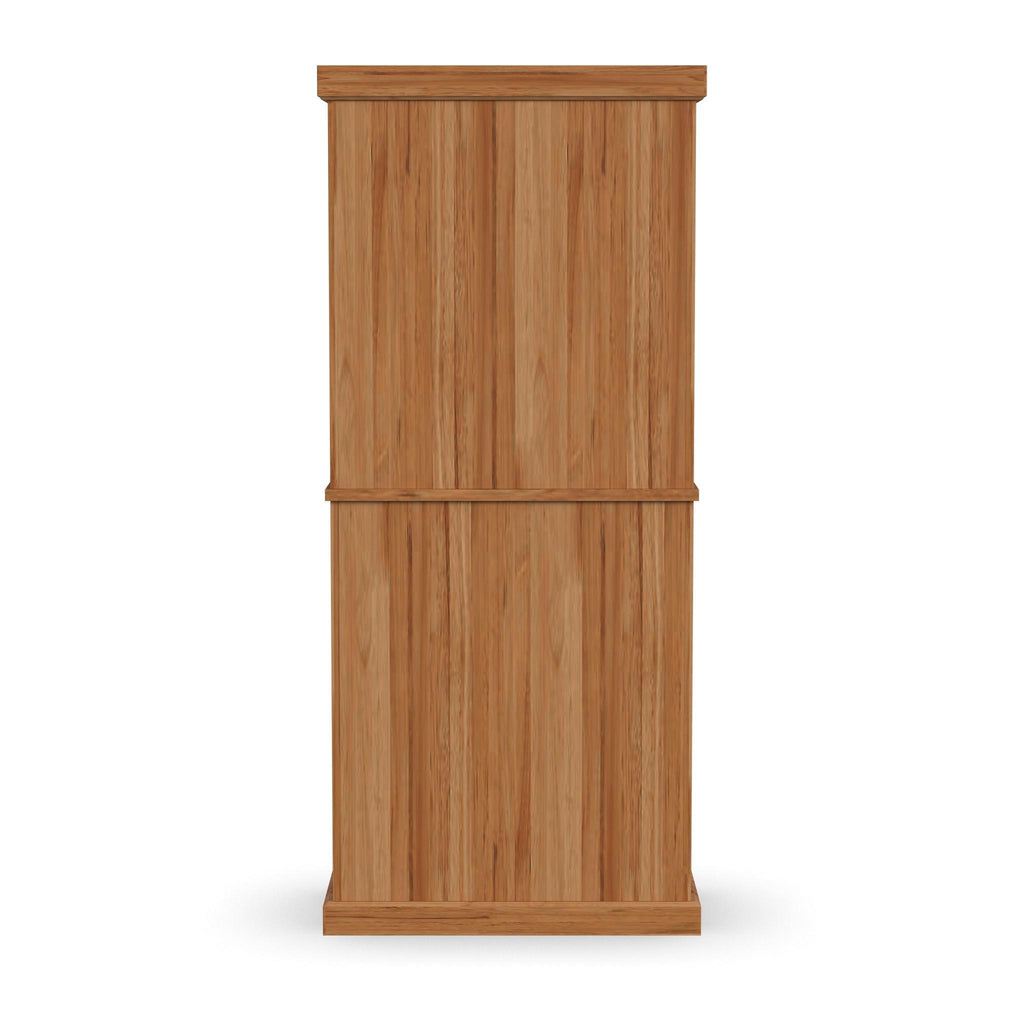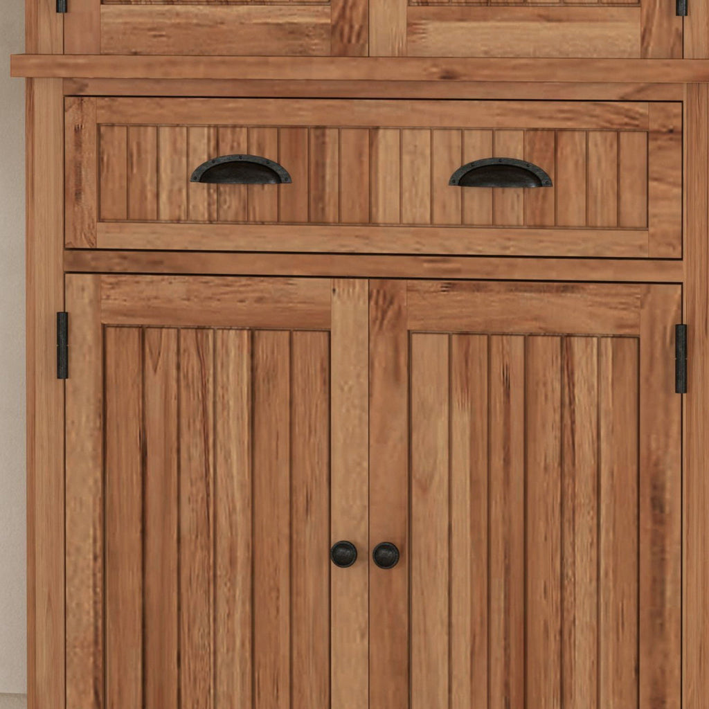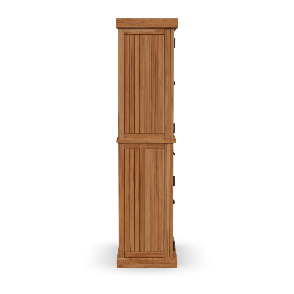 Wainscot flat panels behind solid hardwood frames help define the coastal styling of this Hartford Pantry by homestyles. Crafted from solid hardwood and veneers with engineered wood, and finished in a natural clear finish. The pantry features a single center drawer and both upper and lower doors open to two fully adjustable shelves for flexible storage space. Antiqued brushed hardware completes the coastal feel. Finish and measurements may vary slightly. Assembly required. 71.5"H x 30"W x 16"D.