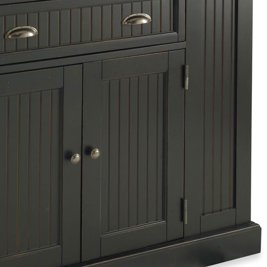 This Hartford Kitchen Island by homestyles is constructed of solid hardwood and engineered woods in a sanded and distressed finish for an aged, worn look. Features include a black granite.75" inlay top, a drop leaf that raises to extend depth to 37", two adjustable shelves on each side, a storage drawer, and storage cabinet with adjustable shelves. Antique brushed nickel hardware. Size: 36.25"H x 48"W x 27"D (37"D with drop leaf extended).