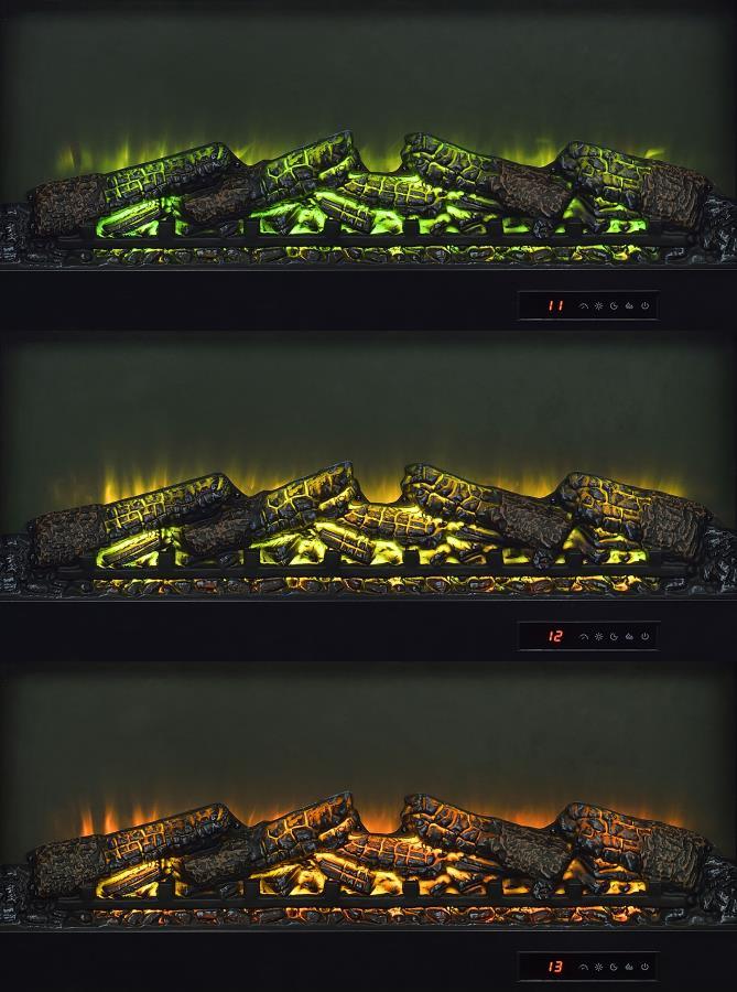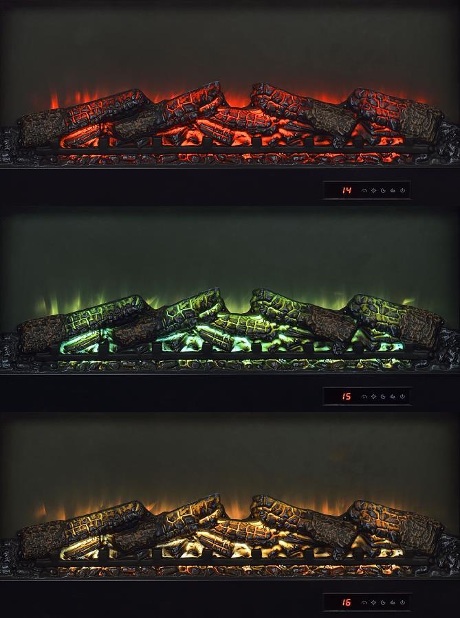 This fireplace TV stand combines rustic charm and modern convenience with a lifelike burning ember display. Finished in rich dark pine, it features two framed tempered glass doors that open to adjustable shelving for media or decor. The central fireplace insert provides visual warmth, all controlled by a convenient wireless remote. With clean lines, black hardware, and integrated cord access, it accommodates TVs up to 80 inches. Please note that there is no heat function included.