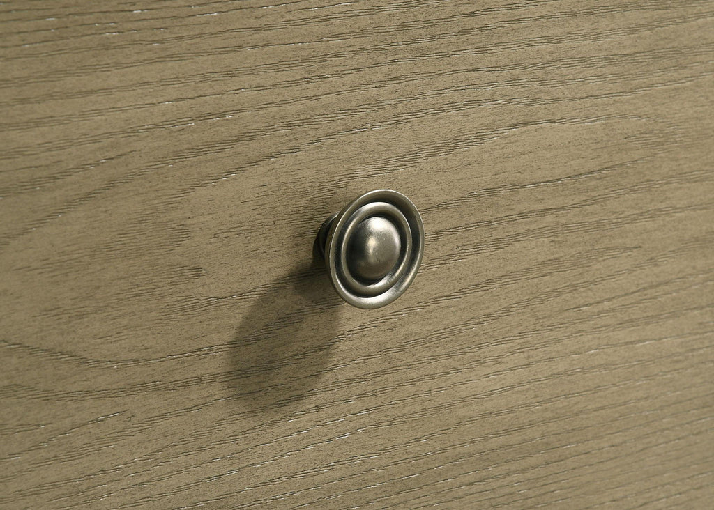 Elevate your space with this bedroom set blending craftsman character and modern utility. A vineyard oak finish enhances the oak grain texture across rubberwood and engineered wood veneer. Antique nickel metal knob and pull handles lend a refined touch to the clean, framed silhouettes. Case pieces glide with ease on heavy-duty metal ball bearing extension slides, while the platform bed features a framed headboard and two footboard drawers. Medium density fiberboard (Mdf) platform panels offer durable, foundation-free mattress support.