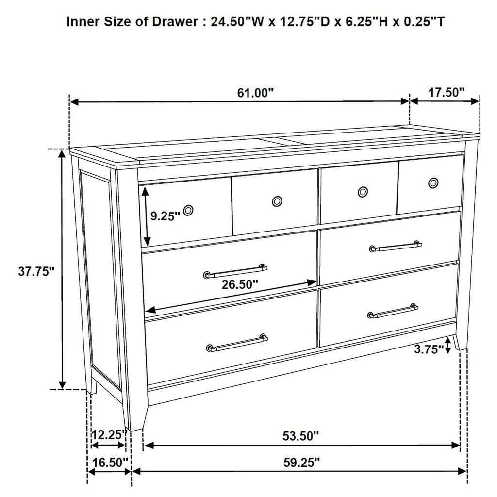 Elevate your space with this bedroom set blending craftsman character and modern utility. A vineyard oak finish enhances the oak grain texture across rubberwood and engineered wood veneer. Antique nickel metal knob and pull handles lend a refined touch to the clean, framed silhouettes. Case pieces glide with ease on heavy-duty metal ball bearing extension slides, while the platform bed features a framed headboard and two footboard drawers. Medium density fiberboard (Mdf) platform panels offer durable, foundation-free mattress support.
