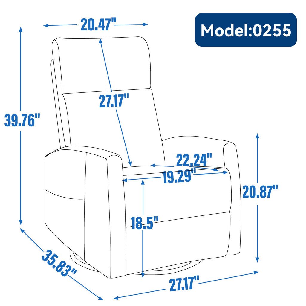 - 360°SWIVEL AND ROCKING RECLINER: The swivel recliner chair has a black metal base that allows for a smooth and gentle 360 degree swivel, and the function of rocking can also make you feel more comfortable and relaxed. You can pull the side button to control the recline of the recliner chair, which means you can get any position you want, it's reclining 155 degrees maximum.