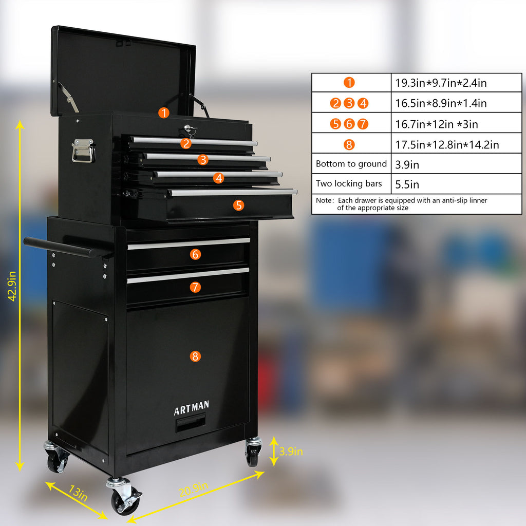 High Capacity Rolling Tool Chest With Wheels And Drawers, 8 Drawer Tool Storage Cabinet - Black