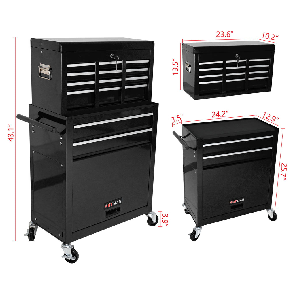 - Ample Storage with Mobile Case Attachment: Features spacious drawers and a large top compartment, including a lockable, detachable toolbox that doubles as a portable case for tools and accessories.