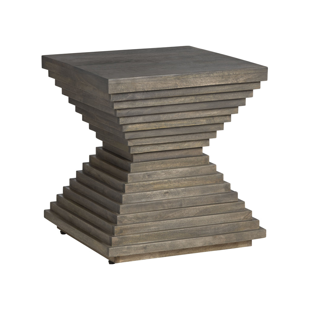 The Crestview Collection Highland Park End Table is a fine addition to the Highland Park collection's timeless design and transitional elegance. Crafted from rich brown-stained mango wood, this end table boasts a square form that is a distinctive blocky, tiered hourglass shape. Elevate your decor with the Highland Park End Table, where sophistication and intrigue unite seamlessly to enrich your living space.