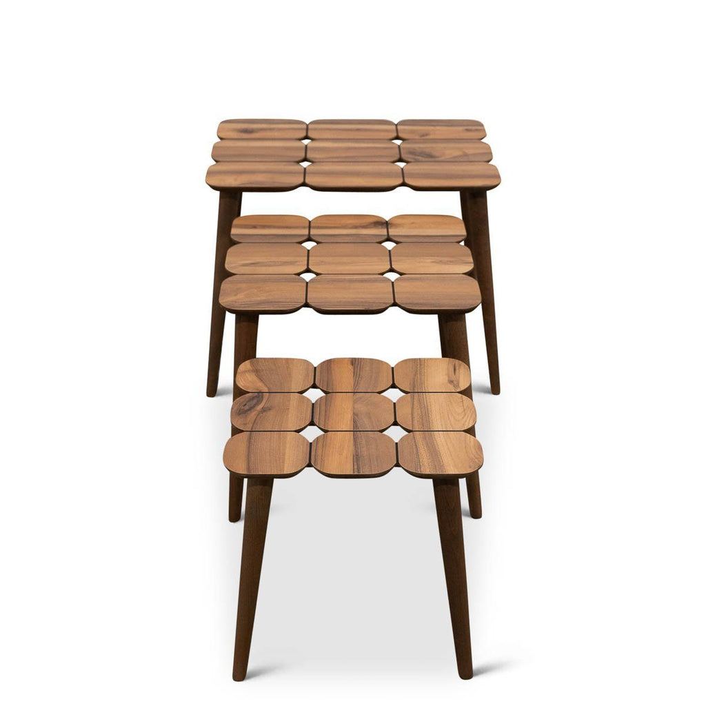 - Space-Saving Design: This nesting table set is designed to save space efficiently. Each piece varies in height and size, enabling them to "nest" together, which is ideal for maximizing space when not in use.