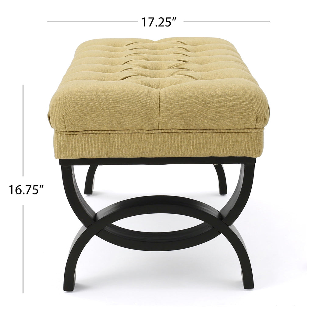 Hilton - Ottoman Bench With Button - Tufted Diamond Stitching - Yellow