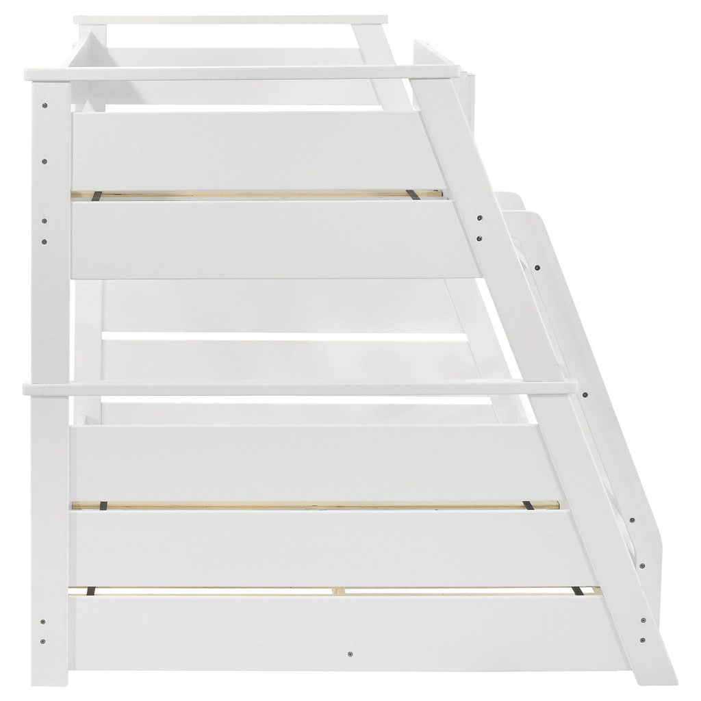Elevate any teen’s room with this versatile twin-over-full bunk bed, blending functionality and style. Crafted from solid rubberwood, and engineered wood, its sturdy frame is designed for durability and timeless appeal. Designed with safety in mind, the upper bunk features a partial guardrail, while the reversible angled ladder offers easy access. A complete slat kit is included, making the bed mattress-ready without the need for a box spring, combining convenience with practical design.