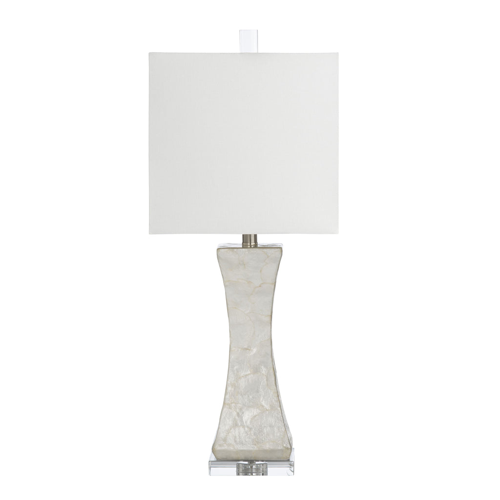 Elegance meets tradition in perfect harmony with the Crestview Collection Hopkins Slim Waist Table Lamp. Meticulously crafted from high-quality resin, this lamp boasts a mesmerizing petal-like texture in a warm white hue that gives any space a sense of refinement. Its hourglass shape adds a touch of graceful symmetry, while the dimensional square silhouette brings a contemporary twist to its classic design. Resting upon a crystal base, this lamp exudes a captivating allure that is the epitome of refined beauty.