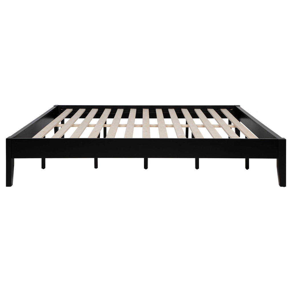Designed for versatility, this universal platform bed offers a sturdy foundation with a fully slatted, mattress-ready design. Crafted from durable rubberwood and pine, it ensures lasting support and stability. Pre-drilled holes on the back legs allow for effortless headboard attachment, providing customization options to suit various bedroom styles. With its clean lines and solid construction, this bed serves as a functional and stylish base for any sleep space.
