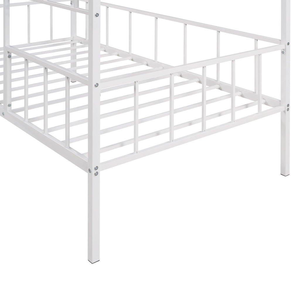House Bed Frame Twin Size With Slatted Support No Box Spring Needed - White