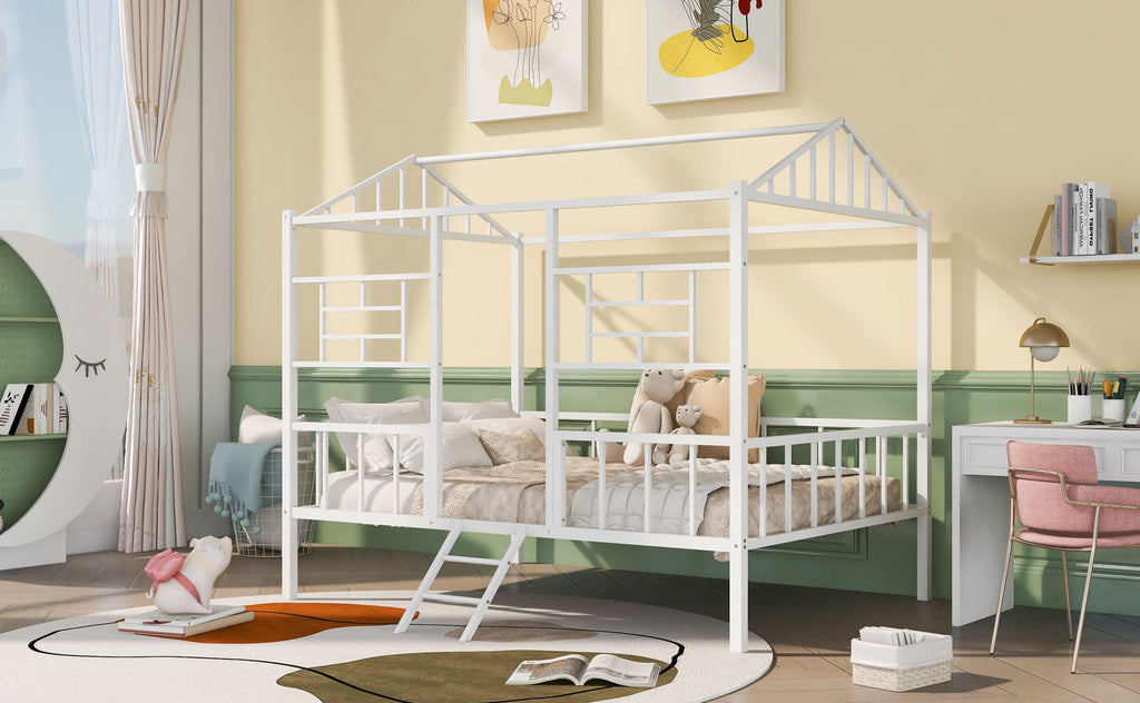 Full Size With Slatted Support, House Bed Frame, No Box Spring Needed - White