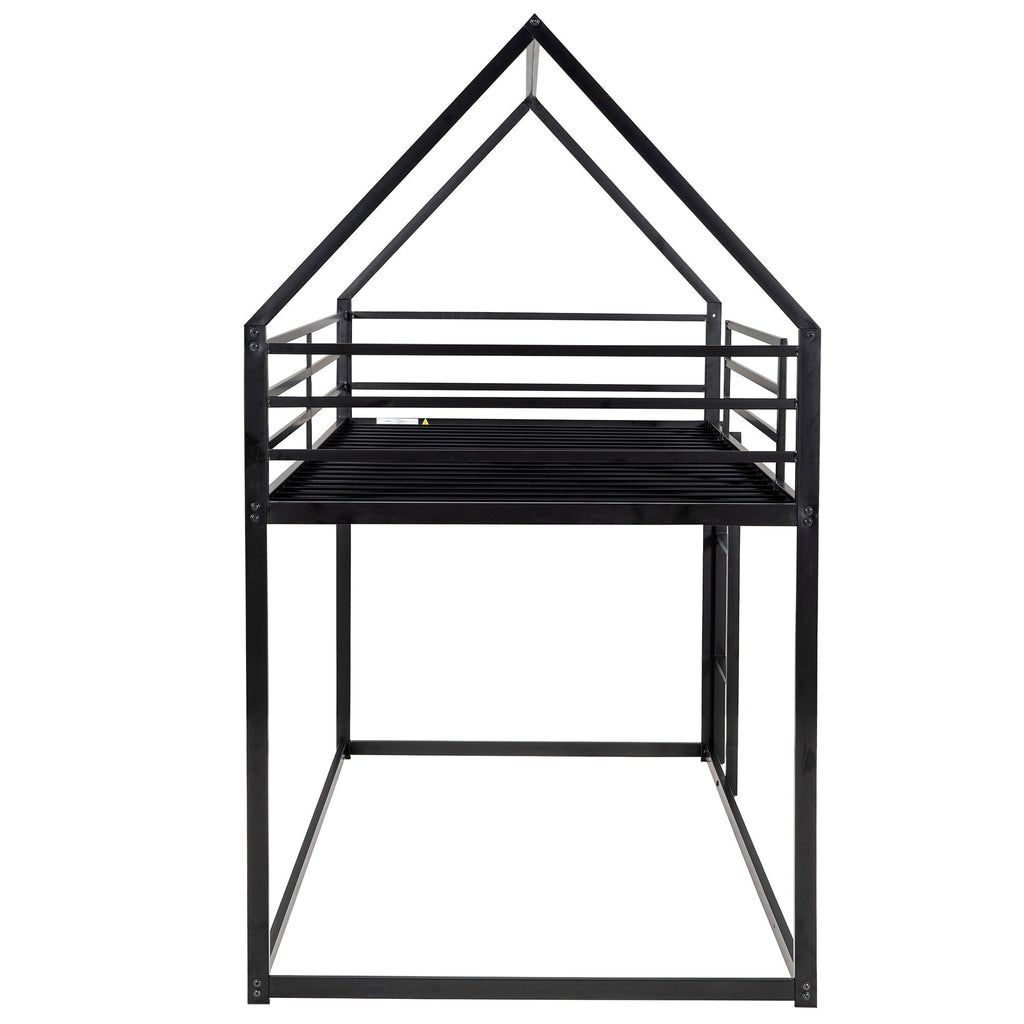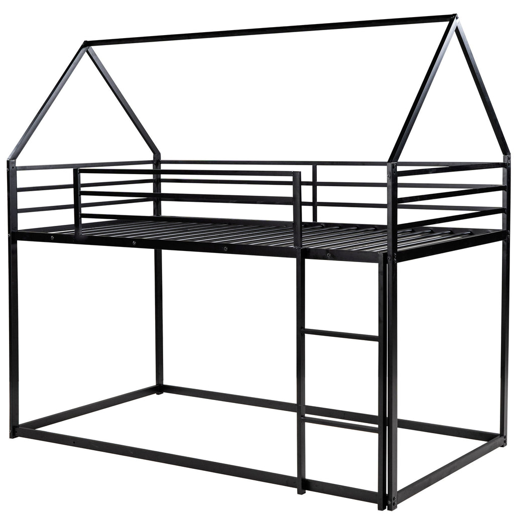 Twin Over Twin House Bunk Bed With Built In Ladder - Black